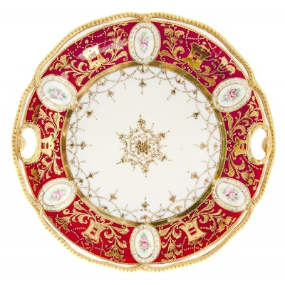 Nippon эпохи Мейдзи. Блюдо для пирожных и кексов. Фарфор, роспись в технике "мориаж", рельефное золочение, ручная роспись. Nippon, Япония, начало ХХ века