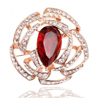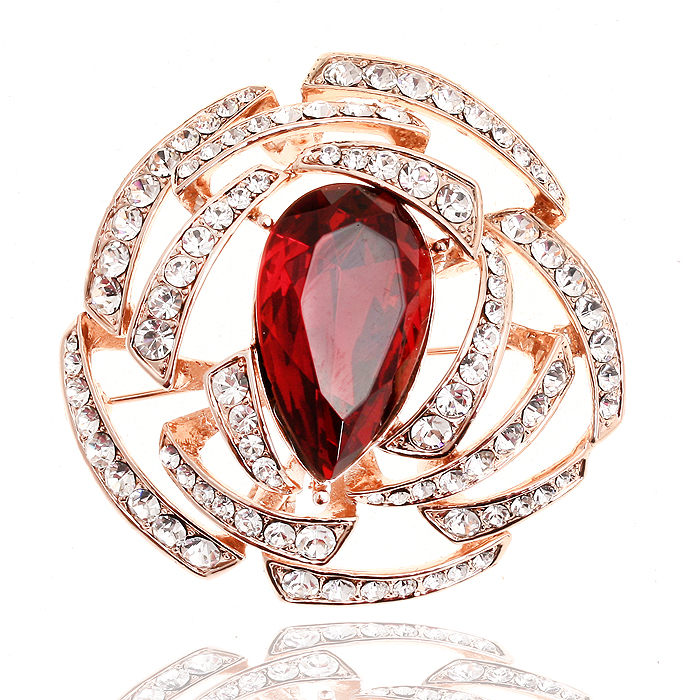 Брошь "Роскошная роза" от Viennois. Крупный австрийский кристалл винного цвета, прозрачные кристаллы, золочение 18 К золотом. Гонконг, 2000-е гг.