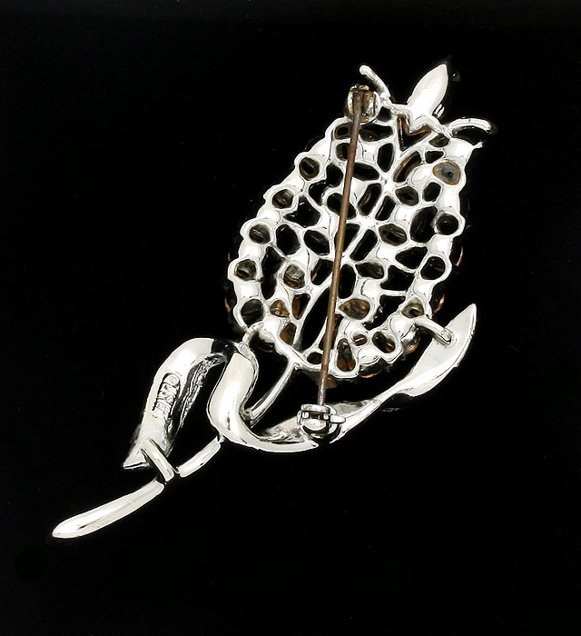 Изысканная брошь "Сапфировый тюльпан" от Lisner, клеймо на оборотной стороне.