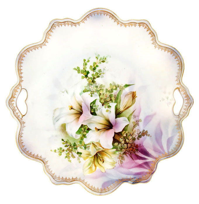 Старинное немецкое классическое блюдо для пирожных и кексов "Лилии".