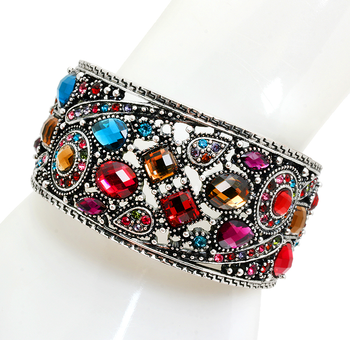 Браслет "Гертруда" от Arrina. Разноцветные кристаллы и стразы, бижутерный сплав серебряного тона. Гонконг, 2000-е гг.