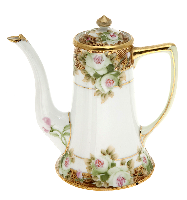 Nippon эпохи Мейдзи. Набор для сервировки кофе или чая "Цветы жасмина", 4 предмета. Фарфор, роспись, рельефное золочение 24 К. Nippon, Япония, начало ХХ века