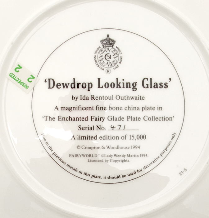 "Росинка-зеркало", декоративная тарелка. Фарфор, деколь, золочение. Royal Worcester, Великобритания, 1994 год