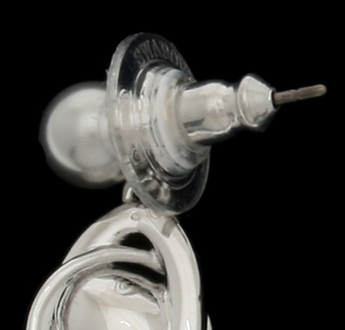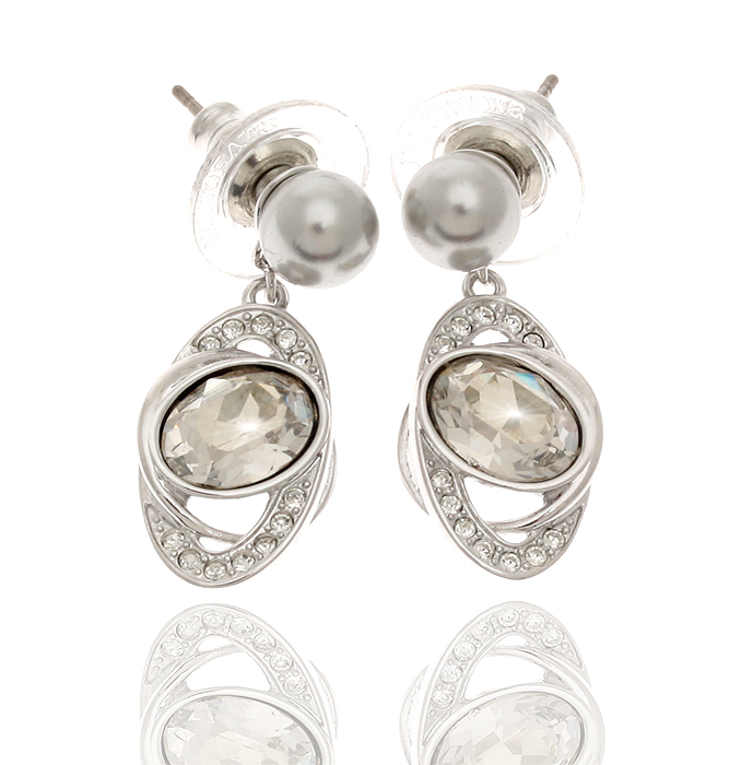 Серьги-пусеты "Хрустальная слеза" от Swarovski. Крупные кристаллы Сваровски, стразы, искусственный жемчуг, бижутерный сплав серебряного тона. США, 2000-е гг.