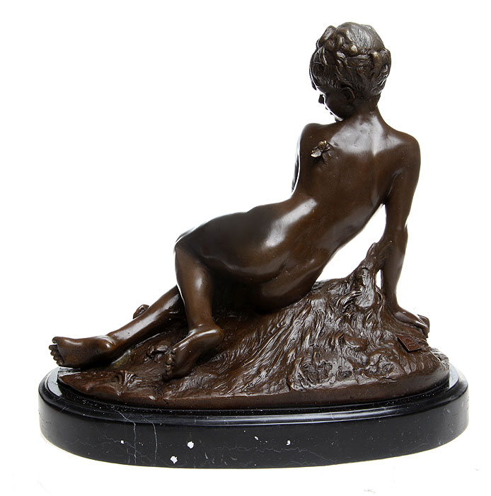 Статуэтка "Обнаженная девушка с бабочкой на плече" в стиле Модерн. Бронза 100%, мрамор. Франция, конец ХХ века