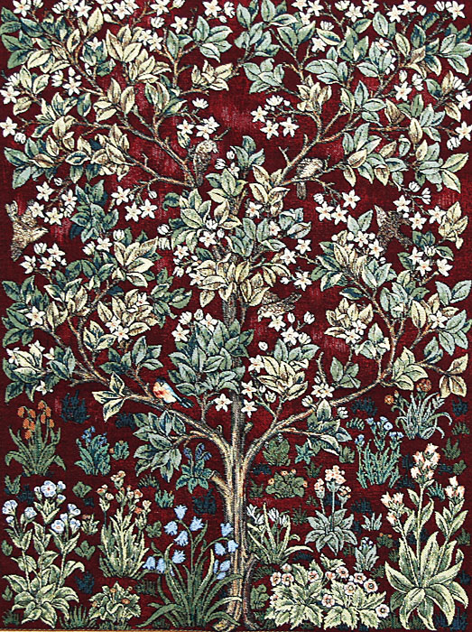 Гобелен "Древо жизни" (красный фон). Хлопок, копия со средневекового оригинала из музея Клюни (Париж)