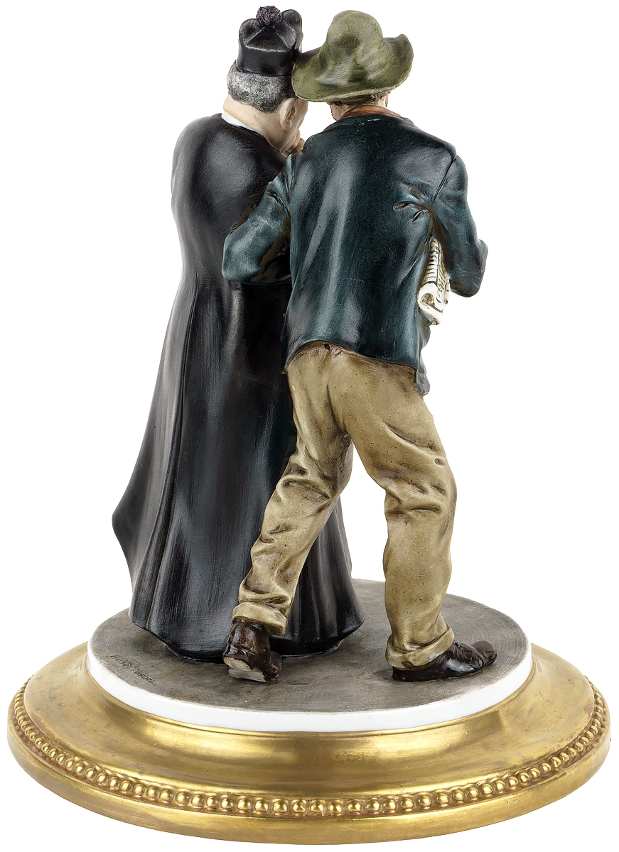 Великолепная жанровая статуэтка "Сложный вопрос" знаменитой неаполитанской фабрики фарфора Capodimonte. Этот коллекционный фарфор, отличает точайшая проработка мелких деталей и повышенное внимание авторов к жесту, позе и выражению лица персонажей.