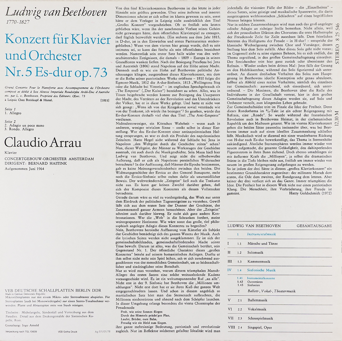 Виниловая пластинка Beethoven Konzert fur Klavier und Orchester Nr5 Es-dur op 73 Бетховен Концерт для фортепьяно с оркестром N5 Claudio Arrau(1 LP)