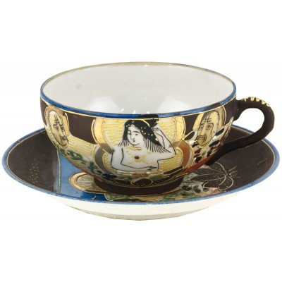 Чайная пара "Утро", Фарфор, рельефная роспись, Япония, первая половина 20 века