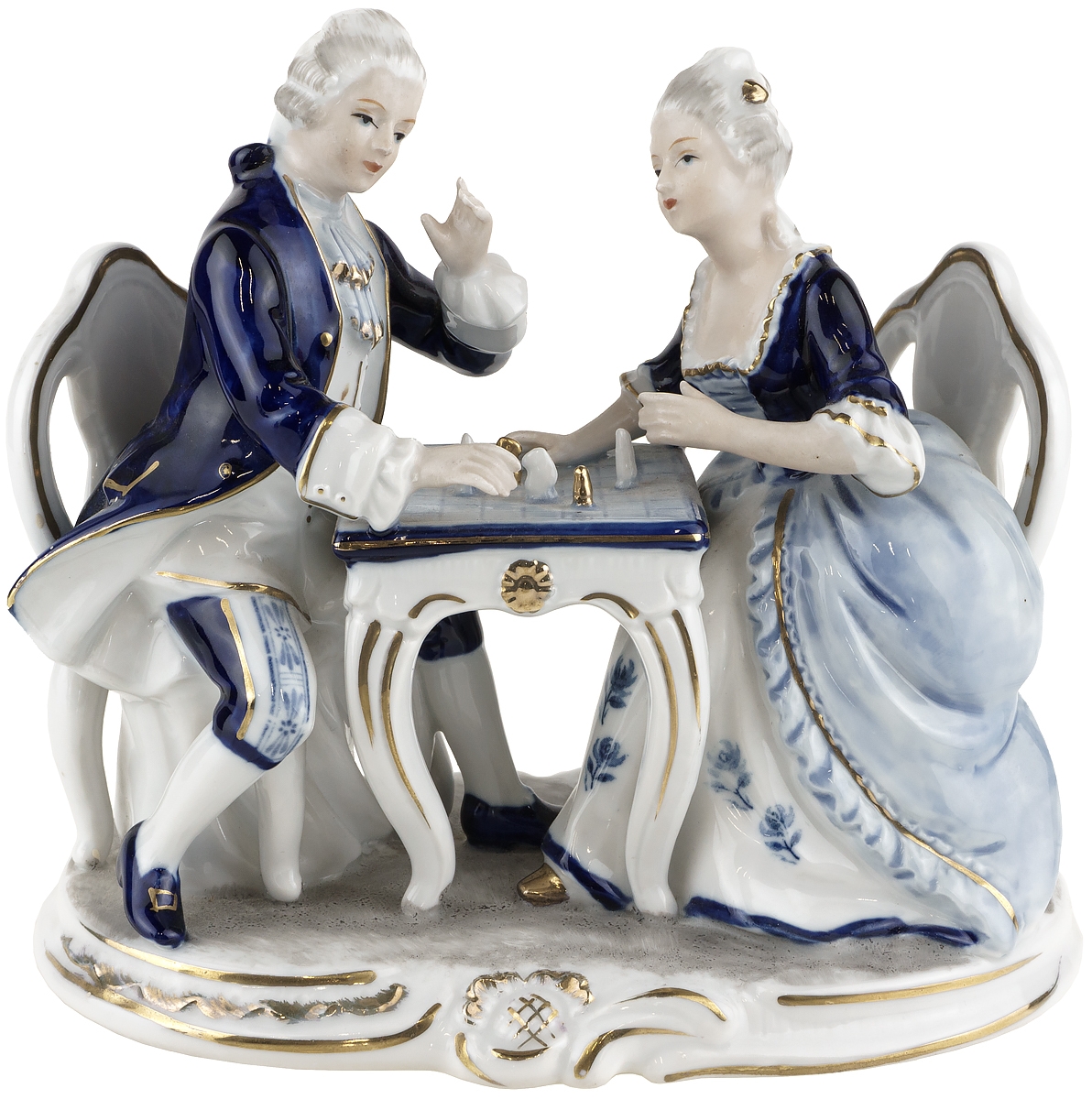 Винтажная статуэтка в стиле Дрезден "Игра в шахматы".