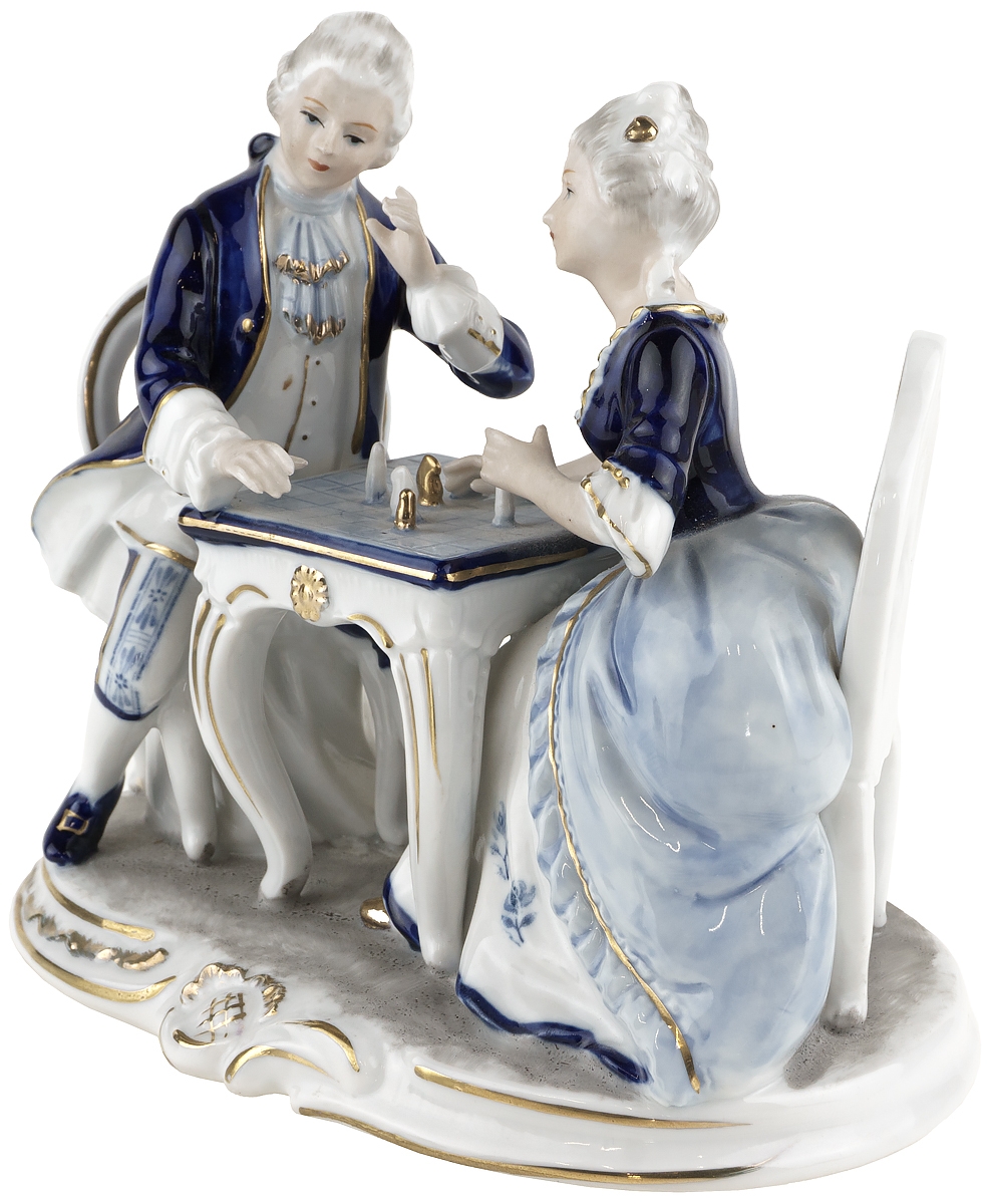 Статуэтка винтажная "Игра в шахматы", Фарфор, Высота 16 см, Германия?, вторая половина ХХ века
