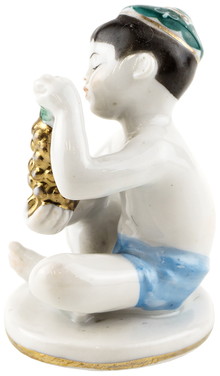 Статуэтка фарфоровая "Мальчик с виноградом", винтаж, высота 7 см, ЛФЗ, СССР, 1960 - е гг.
